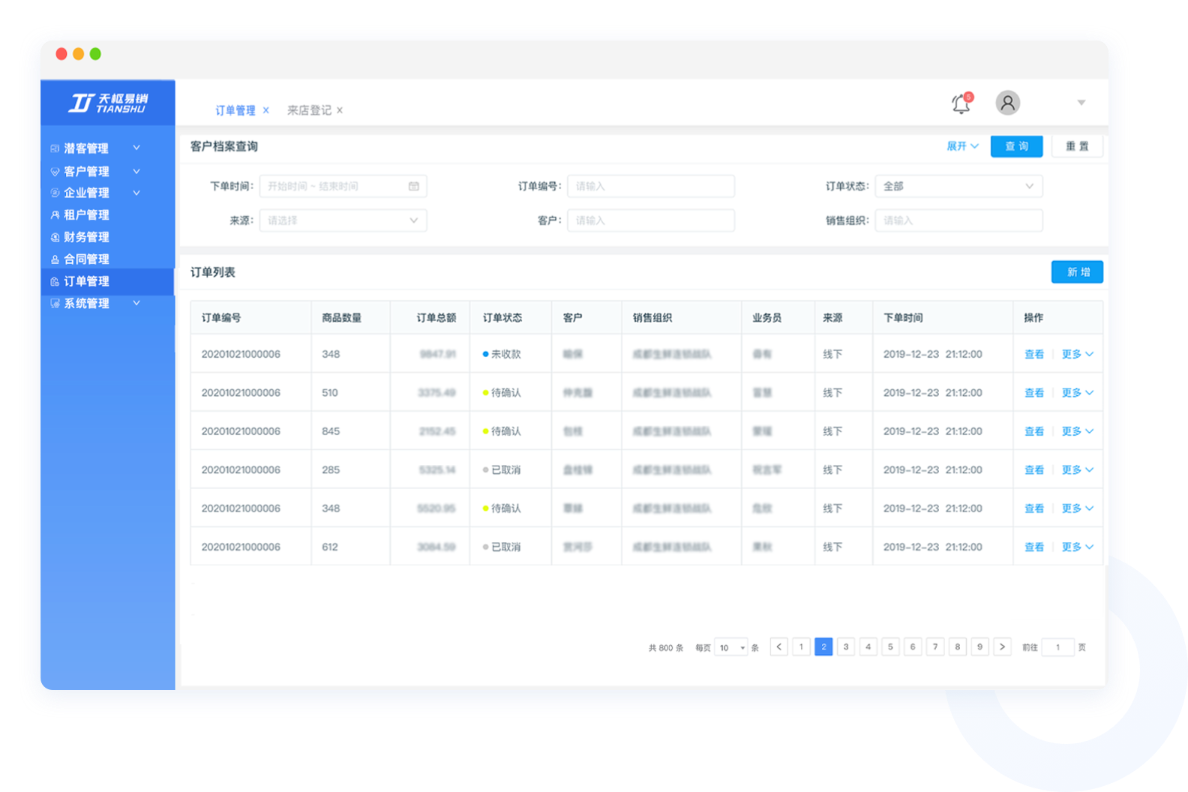 客户状态和跟进记录一目了然,团队协作更高效;完善的合同和订单管理,让您成本降低78%,效率提升69%。