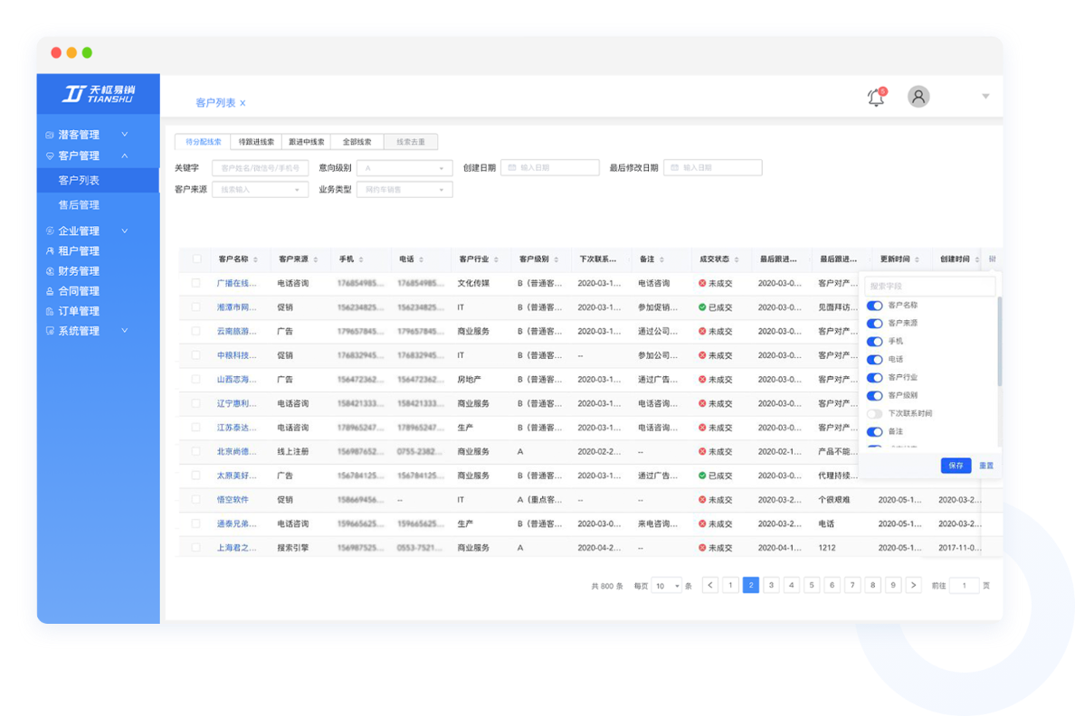 天枢易销CRM系统可灵活应用到30+企业